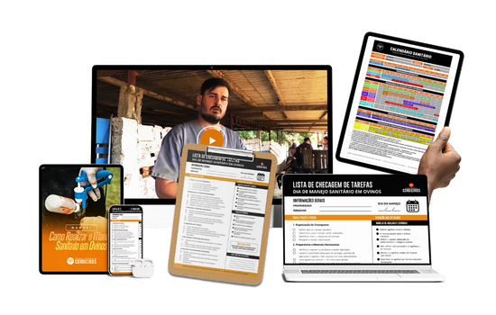 Guia de 30+ páginas com TUDO sobre manejo sanitário profissional. Para levar ao campo e consultar sem internet.
